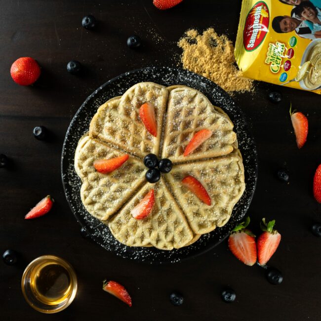 - සකස් කර ගත් වොෆල්ස් වලට මී පැණි හෝ තමන් කැමතී පැණි රස පිරවුමක් එක්කර ගන්න.